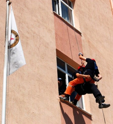 Tatbikat öncesinde AFAD Arama Kurtarma Birlik Müdürü Seyit Ahmet Seldüz, öğrencilere deprem öncesi, deprem anı ve sonrasındaki hareket tarzları, bina tahliyesinde dikkat edilecek hususlar, yangından korunma ve yangın tüpü kullanımı konularında bilgi verdi. Eğitimin ardından yangını yaşayan kız yurdu bölümünde yangın anında bina tahliyesi ve yangın tüpü kullanımı tatbikatları yapıldı. Tatbikata 50 kız öğrenci ile 25 personel katıldı. Daha sonra da erkek yurdu kısmına geçildi. Burada da sedye ile yaralı indirme ve iple adam kurtarma tatbikatları yapıldı.