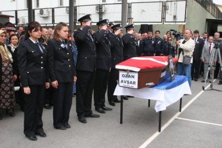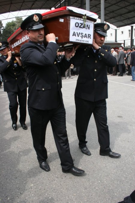 İzmir'in Karabağlar ilçesinde bir çelik kapı imalathanesinde meydana gelen patlamanın ardından çıkan yangına müdahale ederken parke yığınlarının altında kalarak şehit olan itfaiye eri Ozan Avşar için İtfaiye Daire Başkanlığı'nda tören düzenlendi. CİHAN