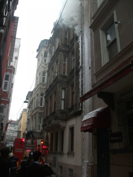Yangın İstiklal Caddesi Tel Sokak 4 numarada tarihi tiyatro salonunun da bulunduğu binada çıktı. Tarihi binadan çıkan dumanları gören vatandaşlar hemen itfaiyeye haber verdi. Beyoğlu İtfaiyesi ihbarı alır almaz hareket etti. İstiklal Caddesi girişine gelen itfaiye ekipleri hidrolik demir bariyerler nedeniyle ilerleyemedi. Telsizle yardım isteyen itfaiye ekipleri belediyeden bariyerlerin indirilmesini istedi. Bir süre beklemek zorunda kalan itfaiye erleri bariyerlerin inmesinin ardından tekrar hareket etti. İtfaiye aracının geçtiği sırada bariyerler yeniden kalktı. Yeniden kalkan bariyerler, hızlı bir şekilde ilerleyen itfaiye aracının yağ deposunu patlattı.