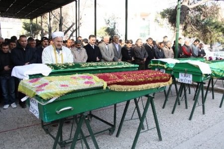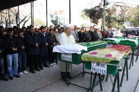 Ailesinin 4 tabutu arasında taziyeleri kabul eden oğul Osman Ergüven’in güçlükle ayakta durduğu görüldü. Ergüven’e yakınları destek oldu. Cenaze namazının ardından cenazeler Gemlik Mezarlığı'na defnedildi.