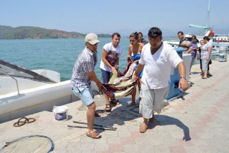 Fethiye Körfezi'nde yaralı bir Caretta Caretta kaplumbağa olduğu ihbarını alan DEKAMER yetkilileri, Dalyan’dan çıkarak Fethiye’ye geldi. Balıkçıların oltalarındaki iğnelerle boğazından yaralanan yaralı Caretta Caretta’ya ulaşan ekipler, kaplumbağayı kurtarmak için kolları sıvadı. İlk olarak yaralı kaplumbağayı denizden çıkarmaya çalışan ekipler, ellerinde balıklarla yaklaşık yarım saat Caretta Caretta’yı yakalamaya çalıştı. Karnını doyurmak için balıklara gelen ve file yardımı ile yakalanan kaplumbağa, önce balıkçı teknesine ardından da sürat motoruna alınarak kıyıya çıkarıldı. Bu esnada kaplumbağanın hayatta kalması için yoğun çaba sarf eden ekipler, Caretta Caretta’yı ıslak tutmak için sık sık deniz suyu ile yıkayıp, üzerini ıslak havlu ile sardı.