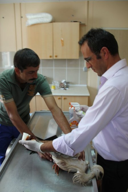 Erzincan’da elektrik akımına kapılan ve sağ bacağı kopan yaralı yavru leyleğin kopan bacağına protez takılacak.
