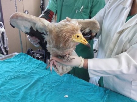Delice İlçe Tarım Müdürlüğü’nde görevli veteriner hekimler tarafından yapılan ilk tıbbi müdahalenin ardından yaralı akbaba, Kırıkkale İl Çevre ve Orman Müdürlüğü yetkililerine teslim edildi. Daha sonra İl Çevre ve Orman Müdürlüğü görevlileri tarafından Kırıkkale Veteriner Fakültesi Cerrahi Kliniği'ne getirilen Mısır akbabasının sol ayağında ve sol kanadında elektrik çarpmasına bağlı olabileceği değerlendirilen yanık yaraları belirlendi.