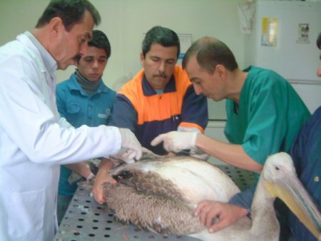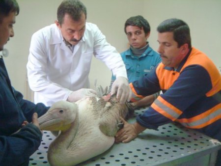 Kanadından yaralı olarak merkeze getirilen pelikan, Belediye Çevre Koruma ve Kontrol Müdürü Veteriner Hekim Fevzi Özkan’ın da katıldığı operasyon sonucunda tekrar uçabilecek duruma geldi.