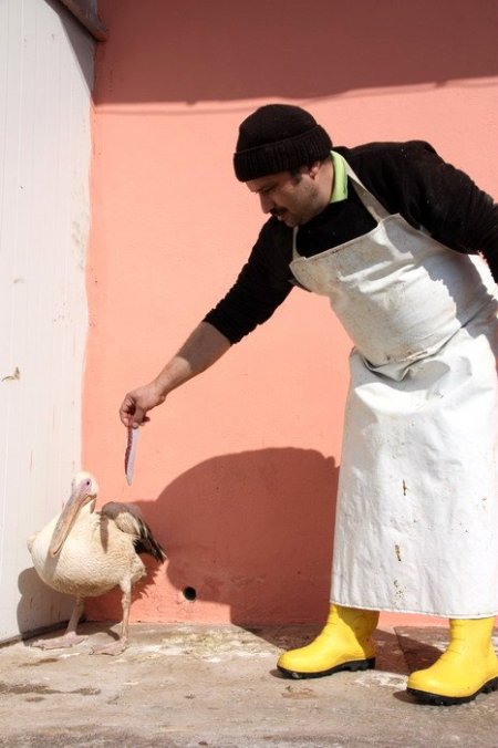 Tedavisi yapılan pelikan kuşu, entegre et tesislerinde çalışan görevlilerin maskotu haline geldi. Belediye görevlileri “Behçet” adını verdikleri pelikana ciğer yedirerek kendi elleriyle besliyorlar. İyileşmeyi bekleyen Sevimli pelikan diğer hayvanlarla da dost oldu. Yavru köpeklerle arkadaş olan pelikan kuşu zaman zaman onlarla oynayıp eğlenceli vakit geçiriyor. Yaralı halde bulunan pelikan kuşuna Aksaray Belediyesi tarafından sahip çıkılarak kısa sürede tedavi edilmesi, vatandaşlar tarafından da takdirle karşılandı. Hayvan sever vatandaşlar, Aksaray Belediyesi'nin yardıma muhtaç hayvanlara yardım eli uzatmasından dolayı başta Belediye Başkanı Nevzat Palta olmak üzere emeği geçen herkese teşekkür etti. CİHAN