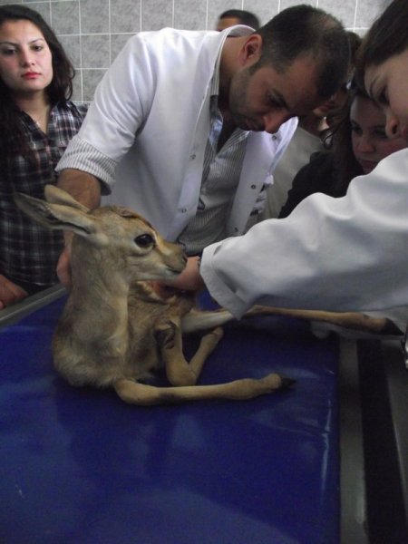 Hayvanlarını dağlık arazide otlatırken yavru yaralı ceylan bulan çoban Hasan Dinler, Türkiye Tabiatı Koruma Derneği Hatay Şubesi Yönetim Kurulu Başkanı Abdullah Öğünç’ü arayarak durumu bildirdi. Öğünç, Orman ve Su İşleri Bakanlığı’na bağlı Hatay 7. Bölge Müdürlüğü ekipleriyle birlikte ceylanı Hatay Mustafa Kemal Üniversitesi Veterinerlik Fakültesi'ne getirdi. Yaralı ceylanı tedavi eden öğretim görevlisi Aliye Sağkan Öztürk, “Ceylanın arka baldır bölgesinde ufak bir yara vardı. Yara bakımını yaptıkz. Çok ciddi bir problemi yok.” dedi.