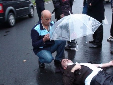 Cumhuriyet Caddesi Harbiye Orduevi önünde yolun karşısına geçmek isteyen bir kişiye, Nurettin M.’nin kullandığı 34 TEC 54 plakalı ticari araç çarptı. Ağır yaralanan vatandaşa tesadüfen yoldan geçen 2 doktor müdahale etti. Yaralıyı sağınak yağmurdan korumak için bazı vatandaşlar şemsiye tuttu. CİHAN