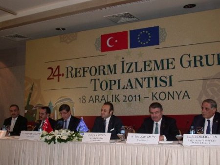 Avrupa Birliği (AB) Bakanı Egemen Bağış, Dışişleri Bakanı Ahmet Davutoğlu, İçişleri Bakanı İdris Naim Şahin ve Adalet Bakanı Sadullah Ergin'in katıldığı Reform İzleme Grubu Toplantısı sona erdi. Basın toplantısına, Türkiye-AB Karma Parlamento Komisyonu Eşbaşkanı Afif Demirkıran ile TBMM AB Uyum Komisyonu Başkanı Prof. Dr. Mehmet Sayım Tekelioğlu da katıldı.