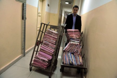 Yargitay ek binasinin alt katlarinda bulunan arsiv de dosya yogunlugu dikkat cekiyor !!