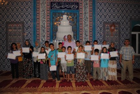 Antalya'nın Manavgat ilçesinde Sürücüler Camii'nde yaz kurslarına katılan öğrenciler kursa katılma belgelerini aldı. Sürücüler Camii'nde yaz kursuna katılan 20 öğrencinin kursa katılma belgesini Manavgat Müftüsü Halil Taş verdi. Sürücüler Camii İmam Hatibi Mustafa Demir, kursa katılan 20 öğrencinin 20'sinin de belge almaya hak kazandığını söyledi.