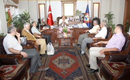 Aksaray Üniversitesi Rektörü Prof. Dr. Mustafa Acar ile Türkiye Yazarlar Birliği Başkanı Mehmet Doğan ve beraberindeki heyet, Aksaray Belediye Başkanı Nevzat Palta’yı ziyaret etti.