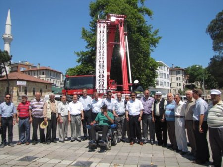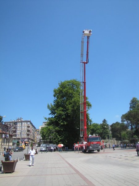 Ordu'nun Ünye Belediyesi, hizmet araçlarına bir yenisini daha ilave etti. 37 metre yüksekliğe uzanan yeni itfaiye aracının paletine binen vatandaşlar tarihi 500 yıllık çınar ağacını yukarıdan izledi.