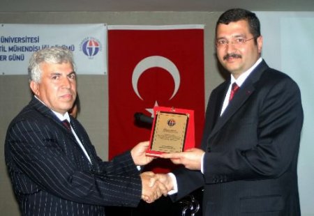 Açılış konuşmasının ardından GAÜN Mühendislik Fakültesi Sani Konukoğlu Tekstil Mühendisliği Bölüm Başkanı Prof. Dr. Ali Kireçci, Sanko Holding Tekstil İşletmeleri Müdürü Ökkeş Cansız'a plaket takdim etti.
