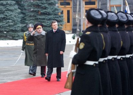 Yanukoviç için cumhurbaşkanlığı köşkü önünde top atışları eşliğinde askeri tören düzenledi. Köşkte yapılan merasimde Yanukoviç, eski Ukrayna Cumhurbaşkanı Viktor Yuşçenko'dan görevi teslim alarak görevine başladı.