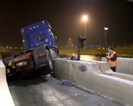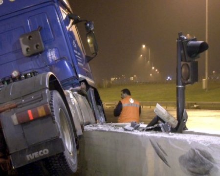 Kaza, TEM otoyolu Orhanlı gişeleri İstanbul istikametinde meydana geldi. Çalıştığı şirketten aldığı 06 ZDE 67 plakalı dorsesi olmayan TIR ile yola çıkan Adnan Kaplan isimli sürücü, OGS gişelerine hızlı girince hakimiyetini kaybederek duvara çarptı. Ön lastikleri gişe duvarının üstende asılı kalan TIR’ın elektronik aksamı da zarar gördü. Kazanın meydana geldiği OGS gişesi trafiğe kapatıldı. Sürücüler, başka gişelere yönlendirildi.