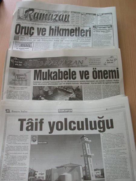 Sakarya da 10 yakın yerel gazetenin neredeyse tamamı bir tam sayfayı Ramazan’a ayırıyor. Kentin yerel gazetelerinden Yenigün, Ramazan için özel tam sayfa ayırıyor. Yenigün Gazetesi Sorumlu Müdürü Müjdat Çetin, Yenigün Gazetesi’nin 12 yaşında olduğunu ve 12 yıldan bu yana Ramazan sayfası yaptıklarını söylüyor. Ramazan'da okuyucuların böyle bir sayfa beklentisi içinde olduğunu ifade eden Çetin, "Ramazanın manevi iklimi insanları kuşatıyor. Okuyucularımızda gazetesinde Ramazan ve oruçla ilgili haber ve yazıları görmek istiyor. Ramazan sayfası dikkatle okunuyor. Küçük hatalarda bile okuyucularımız arıyor." diyor. Çetin, Ramazan sayfası hazırlarken müftülükten yardım aldıklarını, oruçla ilgili güvenilir kaynaklardan doğru bilgiler aktarmaya özen gösterdiklerini vurguluyor.