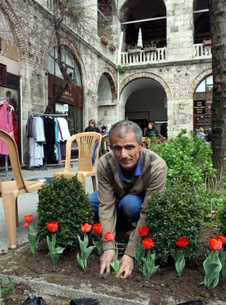 Bursa Büyükşehir Belediyesi Park Bahçeler Şube Müdürlüğü'nce dikilen lale soğanları, ilkbaharı müjdelemelerinin yanı sıra, tarihi şehre doyumsuz güzellikler katıyor. Lale soğanları şehrin ana caddelerinin yanı sıra, tarihi hanların bahçeleri ve parkları da şenlendiriyor.