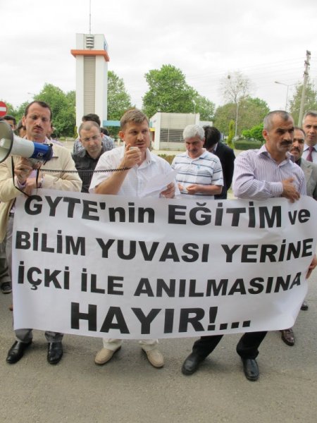 GYTE'de öğrencilerin alkol tüketmeleri üzerine Yeşilay Gebze Şubesi üyeleri tarafından okul önünde basın açıklaması yapıldı. GYTE güvenliği, basın açıklamasının izinsiz olduğu gerekçesiyle okul önünde yapılmasına karşı çıktı. İzin verilememesi üzerine yolun karşısında yapılan basın açıklamasında, alkol maddelerinin okul içerisine serbestçe sokulması protesto edildi.