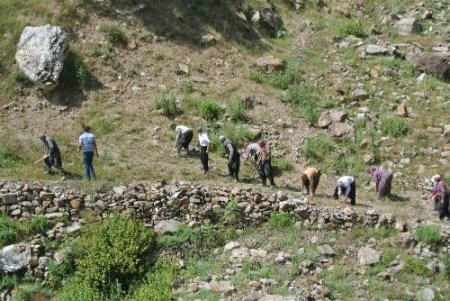 Özellikle hasat zamanı tarlalarına traktör götürmek için köyün bazı yerlerinde kazma kürek her yıl aylarca çalışarak yolu düzlediklerini belirten köy sakinleri de “Ekinlerimizi hasat için köye getirdiğimiz traktör ve patozları kayalara halatlarla bağlayarak yoldan geçiriyoruz. Bu çilemize devletimizin çare bulmasını bekliyoruz.” dedi.