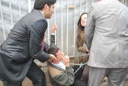Dev-Lis üyesi bir grup, YGS’de şifre iddiasını protesto için MEB ve Adalet Bakanlığı önünde aynı anda eylem gerçekleştirdi. Burada, “YGS’nin şifresi = eğitimin eşitsizliği” dövizi açan grup üyeleri, kendilerini bakanlığın demir korkuluklarına zincirledi.