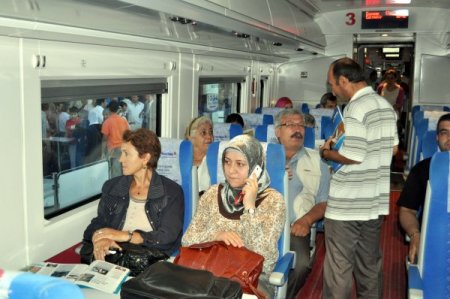 Hızlı tren, ilk yolculuğuna ayakta seyahat eden onlarca yolcuyla çıktı. Vatandaşlar, hızlı trenin hizmete girmesinden duydukları mutluluğu dile getirdi.