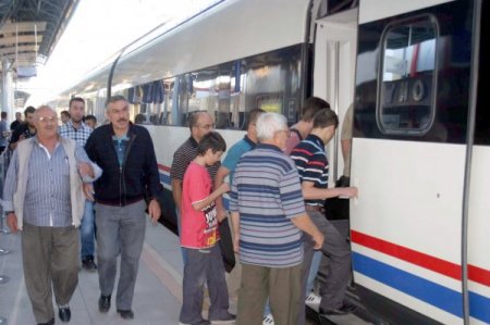Başbakan Erdoğan’ın bayram sonuna kadar ücretsiz hizmet vereceğini açıklamasının ardından YHT’ye olan talep de arttı. Konya-Ankara arası ilk seferini sabah saat 07.00'da gerçekleştiren, trenin 411 koltuğu da doldu. Bayram sonuna kadar ücretsiz hizmet verecek olan YHT'nin ilk seferine vatandaşlar yoğun ilgi gösterdi.