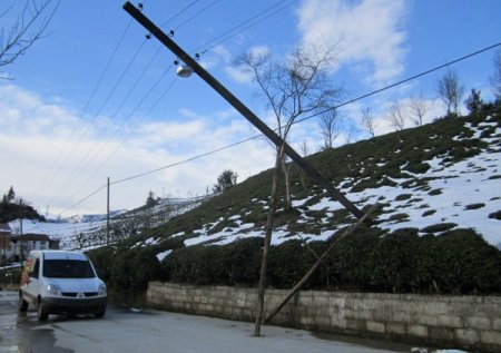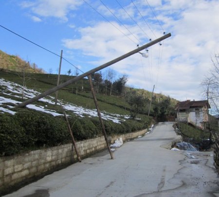 Rize'nin Çamlıhemşin ilçesi Dikkaya köyünde 17 gün önce yıkılarak köy yolunun üzerine düşen elektrik direği, hatlarında enerji olmasına rağmen henüz kaldırılmadı. Köy sakinleri, hatlarında enerji olan direği kazalara sebep olmaması için bir kalas yardımı ile kaldırarak yoldan uzaklaştırdı. Direk halen tehlike saçmaya devam ediyor. CİHAN