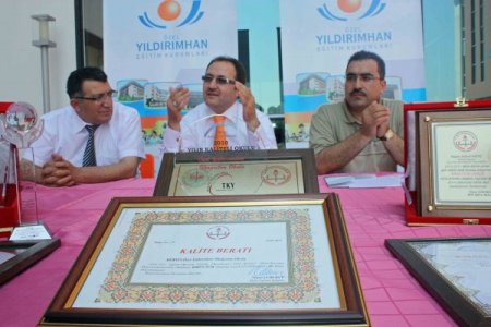 Yıldırımhan İlköğretim Okulu Müdürü Servet Genç, Türkiye’nin en kaliteli okulu seçilmeleri nedeniyle Okul binasında düzenlediği basın toplantısında Türkiye genelinde Milli Eğitim Bakanlığına bağlı tüm resmi-özel okul ve kurumların katıldığı “Eğitimde Kalite Ödülü Yarışmasında” Mersin Özel Yıldırımhan İlköğretim Okulu’nun birinci geldiğini belirtti.