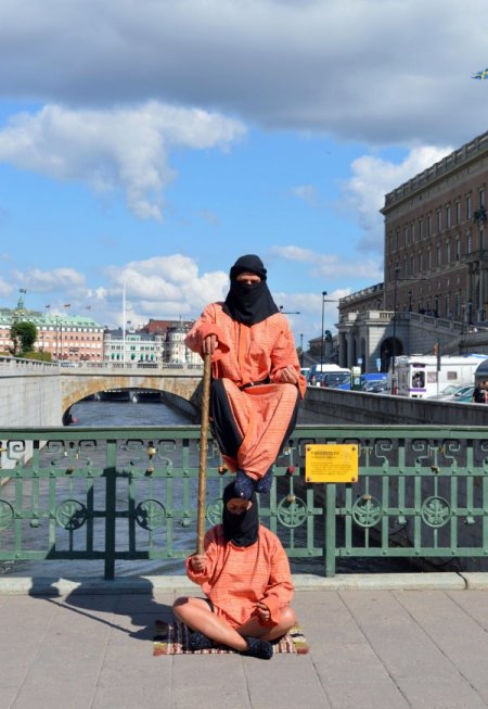 İsveç’in başkenti Stockholm’de giysilerinin altına gizlediği düzenek sayesinde havada bağdaş kuruyormuş gibi görünen şahıs ilgi odağı oldu.