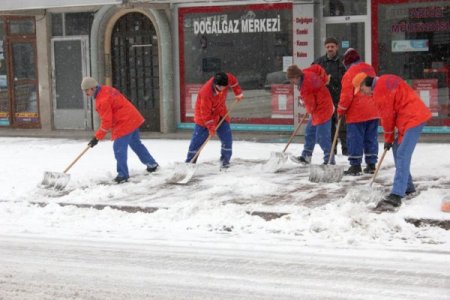 Temizlik İşleri Müdürlüğü ekipleri de kaldırımlarda kar mücadelesine katıldı.