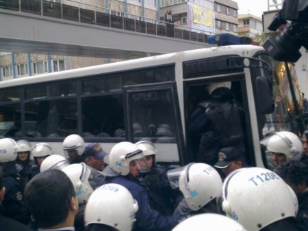 Çıkan arbede üzerine polis, grubu kaldırıma alıp, etrafına çevirdi. Eylemciler, daha sonra teker teker gözaltına alındı. Göstericiler, gözaltı sırasında slogan atmayı sürdürdü. Polis aracına bindirilen şahıslar, emniyete götürüldü.