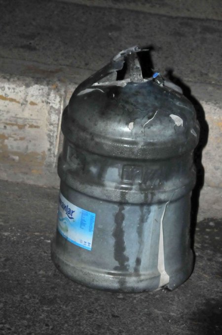 İzmir'in Bornova ilçesinde yola bırakılan su damacanası bomba paniği yaşanmasına yol açtı. Şüpheli damacana, Bomba İmha ve İnceleme Şube Müdürlüğü ekipleri tarafından fünyeyle patlatıldı. Damacananın içinden beton çıktı.
