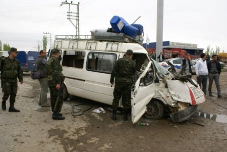 Iğdır'da TIR’a çarpan yolcu minibüsündeki 11 kişi yaralandı.