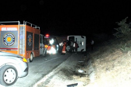 Bursa'da, kontrolden çıkan bir yolcu otobüsünün devrilmesi sonucu 59 kişi yaralandı.