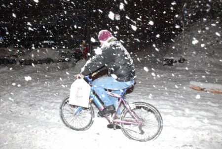 Yoğun kar yağışında otomobiller yolda gitmekte zorlanırken kameralara ilginç görüntüler takıldı. Bazı vatandaşlar otomobillerin gidemediği yollarda bisiklet ve motosiklet ile ilerlemeye çalıştı. Karda gitmekte zorlanan bisiklet sürücüsü kendisine sorulan soruları yanıtsız bırakırken, motosiklet sürücüsü ise patlayan flashlar nedeniyle dengesini kaybetti.