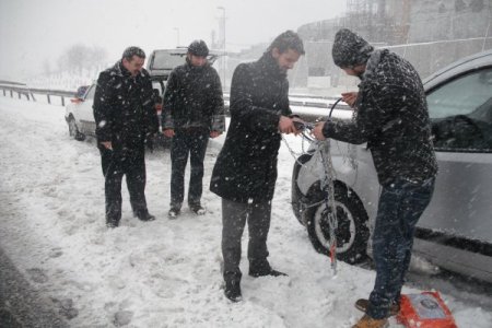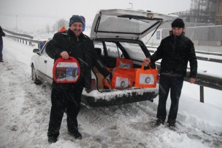 "YOLDA KALAN SÜRÜCÜLER ZİNCİR SATICILARINA KOŞTU"