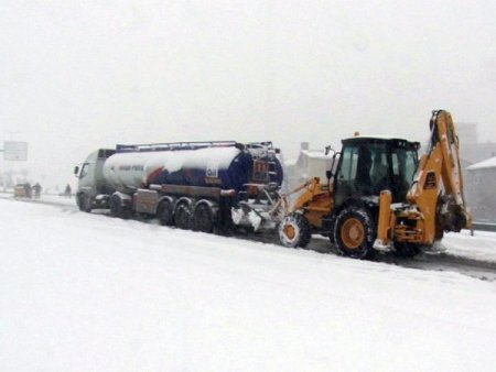 Yoğun kar yağışı ve buzlanma araçlara zor anlar yaşatmaya devam ediyor. Yollarda kalan araçlar ilerlemekte güçlük çekerken, Halkalı’da objektiflere ilginç bir görüntü yansıdı. Yolda kalan ve rampayı çıkamayan tankere, yoldan geçen bir iş makinesi yardım etti. Kepçesini tankerin arka kısmına koyan iş makinesi, tankerin yukarıya çıkmasını sağladı. Tankerin yüklü olup olmadığı öğrenilemezken, aynı yolda çok sayıda aracın ise rampayı çıkarken patinaj çektiği görüldü.
