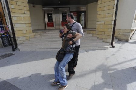 Biber gazının sıkılması sonucu kaçan grup, caddenin üst tarafından tekrar pankartları çıkartarak slogan atmaya başladı. Polisler hazırlandığı sırada, vatandaşlar dükkanlarının önlerindeki malları hızla içeri taşımaya başladı. Bazı esnaflar bu arada dükkanlarının kepengini kapatarak önlem aldı. Olayın ortasında kalmaktan korkan vatandaşların bir kısmı da bir ayakkabıcı dükkanına sığındı.
