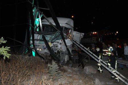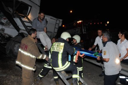 İzmir'in Buca ilçesinde, Muttalip Çoruh (42) idaresindeki TIR, yoldan çıkarak büyük bir yön levhasına çarptı. Araçta sıkışan Çoruh, itfaiye ekiplerinin uzun uğraşları sonucu araçtan çıkarıldı. Çoruh'un sağlık durumunun iyi olduğu öğrenildi.