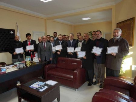 Yozgat Müftülüğü tarafından organize edilen imamların 'Vaaz Becerilerini Geliştirme Eğitimi'ne katılan 22 imama, İl Müftüsü Nuh Korkmaz tarafından sertifikaları verildi.
