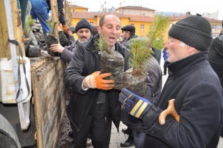 21 Mart Dünya Ormancılık Günü kutlamaları çerçevesinde Yozgat Cumhuriyet Meydanı'nda 3 bin adet karışık türde tüplü fidan dağıtıldı. Fidan dağıtım törenine Yozgat Valisi Necati Şentürk, Belediye Başkan Yardımcısı Tevfik Bozkurt, İl Çevre ve Orman Müdürü Birol Ayyıldız ve vatandaşlar katıldı. Vali Şentürk, karışık türde 3 bin adet tüplü fidan dağıtımı yapıldığını, cumartesi dağıtılacak fidanlarla birlikte bu rakamın 5 bin olacağını söyledi. Yozgat’ta önceki yıllardan 2007 yılına kadar ağaçlandırılan alanın 36 bin hektar olduğunu hatırlatan Vali Şentürk, "2008 ve 2010 yılları arasında ağaçlandırılan alan ise 29 bin hektardır. Neredeyse Cumhuriyet tarihinde dikilen ağaç miktarına denk gelen bir alan ağaçlandırılmış oluyor. Yine bu arazimize 21 milyon fidan dikimi yapmış durumdayız. Ayrıca fidanlıklarımızda 17 milyon civarında fidan üretimi yapmaktayız, bu bakımdan Türkiye'de beşinci sıradayız.” dedi. Gelecek kuşaklara yeşil bir dünya, yeşil bir Yozgat bırakmak istediklerini ifade eden Vali Şentürk, "Bütün bu ağaçlandırma çalışmalarında amaç doğanın bozulan dengesini yeniden ihya etmek ve yeniden düzenlemektir. Bu kapsamda yaşanabilir bir çevreyi kurmak ve gelecek kuşaklara bırakmaktır. İlimizin yüzyıllar önce kurulan çamlığımız bugün bizim nefes aldığımız yerdir. Ağaçlandırmadan maksat Yozgat’ımızın etrafında yeşil bir kuşak meydana getirmek. Bununla birlikte dünyada azalan su kaynaklarını ilimizde çoğaltmak ve hava kalitesini korumak gelecek kuşaklara yaşanabilir bir Yozgat’ı hediye etmektir. Geçen yıl dikilen fidan sayımız 8 milyondu. Bu yıl hedefimiz ise bu sayıyı geçmektir. İnşallah daha güzel bir Yozgat’ı hep birlikte inşa edeceğiz.” diye konuştu. CİHAN