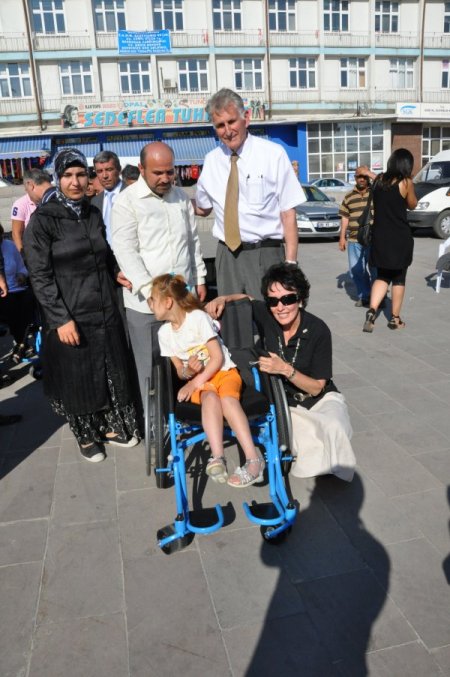 Yozgat Cumhuriyet Meydanı'nda düzenlenen dağıtım törenine Yozgat Platformu Başkanı Kazım Ekinci, LDS Vakfı Türkiye Temsilcileri, Stewen Anita Canfield ve engelli vatandaşlar katıldı. İhtiyaç sahibi engelliler ve aileleri, tekerlekli sandalyeleri, platform yetkililerine gösterdikleri belgeleri ve raporların ardından teslim aldı.