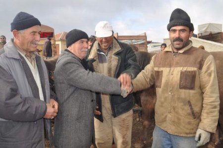 Hayvan pazarına çevre ilçe ve köylerden kurbanlık getiren üreticiler, kurban alacak vatandaşlarla kıyasıya pazarlığa tutuştu. Pazarlık esnasında anlaşamayan alıcı ve satıcıları anlaştırma ise halk arasında müenci diye tabir kişilere düştü. Satıcının 5 bin lira istediği 5 kişilik bir kurbanlığa 4 bin lira veren alıcı, müencinin yardımıyla 4 bin 400 liraya hayvanı satın aldı.