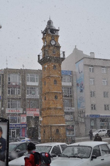Yozgat’ta sabah kısa süren kar yağışı, öğle vakti etkisini artırarak tekrar yağmaya başladı.