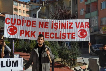 Yozgat’ta bir grup vatandaş, Hakkari’de meydana gelen terör saldırılarını protesto etmek için ellerine aldığı kazma kürekle eylem yaptı.