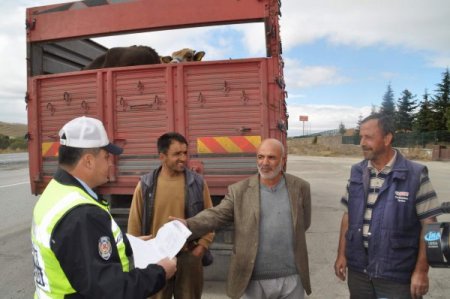 Yozgat Emniyet Müdürlüğü, kaçak hayvan girişini önlemek ve sağlıklı hayvan satışını sağlamak amacıyla E-88 kara yolu üzerinde hayvan yüklü TIR ve kamyonlara göz açtırmıyor. Kurban Bayramı öncesi besledikleri hayvanları satmak için batı illerine akın eden hayvan üreticileri, taşıma esnasında Yozgat'ta trafik ekiplerince durdurulup denetleniyor. Trafik ekipleri durdurdukları araçlarda taşınan hayvan sayıları, kulak küpeleri, hayvanlara ait sağlık raporlarını kontrol ediyor.