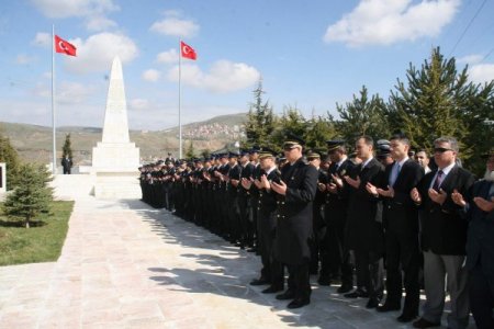 Şehitlikte, saygı duruşu ve İstiklal Marşı okunmasıyla başlayan programda Şehitlik Defterini imzalayan Yozgat Emniyet Müdürü Bekir Akarsu, Polis Teşkilatı'nın 166. kuruluş yıl dönümü münasebetiyle hafta boyunca çeşitli etkinlerin düzenlendiğini ve devam ettiğini söyledi. Akarsu, “Bunlardan bir tanesi de şehitlerimizi ziyaret etmek ve onların aziz ruhlarını saygıyla hürmetle anmak. Onları her zaman yanımızda hissediyoruz. En yakından en uzak geçmişe kadar bu vatan için canını kanını veren tüm şehitlerimizi saygıyla anıyoruz. Bundan sonraki Türk milletti ve Türk devletinin devamında da şehitlerimizin ruhani varlıklarını her zaman yanımızda hissedeceğiz. Biz hissetmesek de onlar her zaman bizim yanımızda, bizimle beraberdirler. Başımız sıkıştığı her zaman da yanımızda oluyorlar. Geçmişe baktığımızda Çanakkale Savaşı'nda, Kurtuluş Savaşı'nda, hatta tek başına bir polis ve bir askerimizin sıkıştığı bir yerde bile onun varlığını hissediyoruz. Tüm şehitlerimizi saygıyla anıyor, Allah, Cennet'te en üstün yere ve Peygamber Efendimiz'le (sav) komşu olsunlar diye diliyorum.” dedi. Kur'an-ı Kerim okunup dua edilmesinden sonra şehit mezarları tek tek ziyaret edilip karanfil bırakıldı.