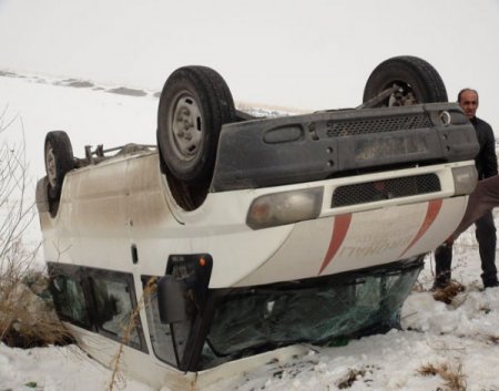 Hakkari'nin Yüksekova ilçesinde trafik kazası 10 kişi yaralandı. Yüksekova Vezirli köyü civarında meydana gelen trafik kazasında tekerleği patlayan minibüs takla atarak şarampole uçtu.