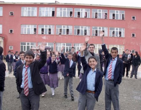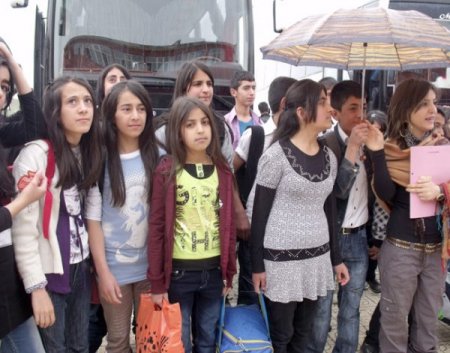 75. yıl ilköğretim okulu bahçesinden 2 otobüs ile hareket eden öğrencileri aileleri, öğretmenleri ve arkadaşları uğurladı. CİHAN