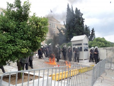 Göstericiler, parlamento binası önünde protesto gösterisi düzenledi.